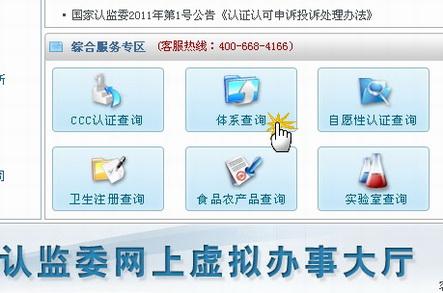 2、于首頁中部“綜合服務(wù)專區(qū)”,點擊“體系查詢”,進入體系查詢頁面;