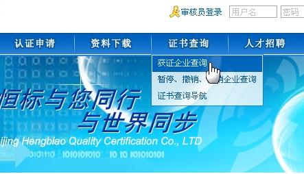 二、證書查詢方法 (一)通過恒標網(wǎng)站查詢 1、登陸www.lyyzad.cn,進入北京恒標質(zhì)量認證有限公司網(wǎng)站首頁;